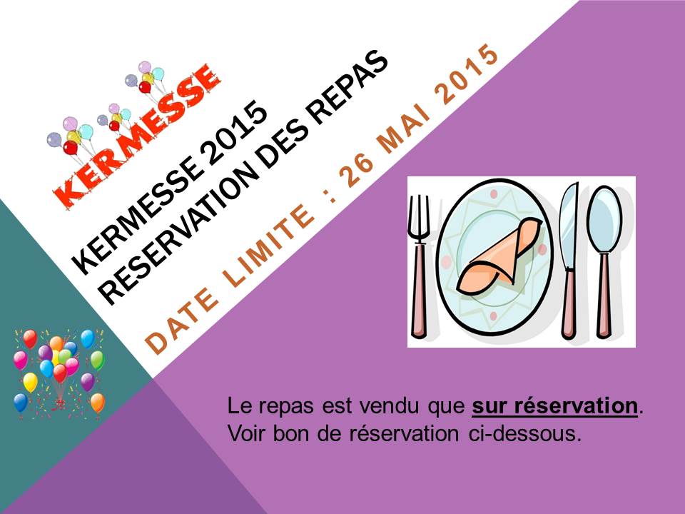 Accueil > RESERVATION REPAS - KERMESSE 2015